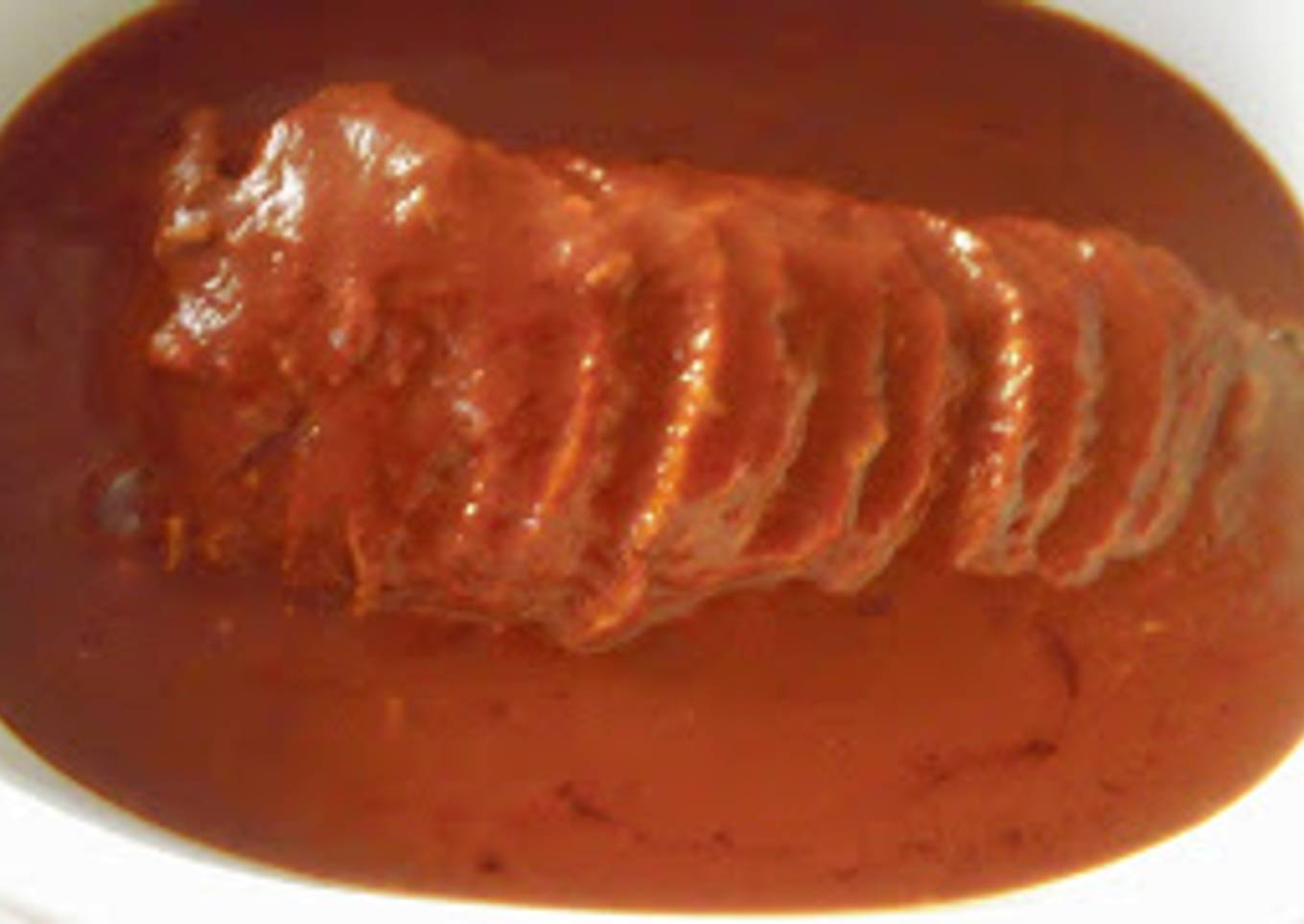- 8 chiles guajillos son chiles rojos que no pican, se limpian de semillas, venas y rabito y se ponen a hervir con 2 dientes de ajo, 2 jitomates (tomates rojos), orégano y dos cucharaditas de consomé en polvo o sal. La carne se pone a freír en un poco de aceite de oliva, salpimentándola.