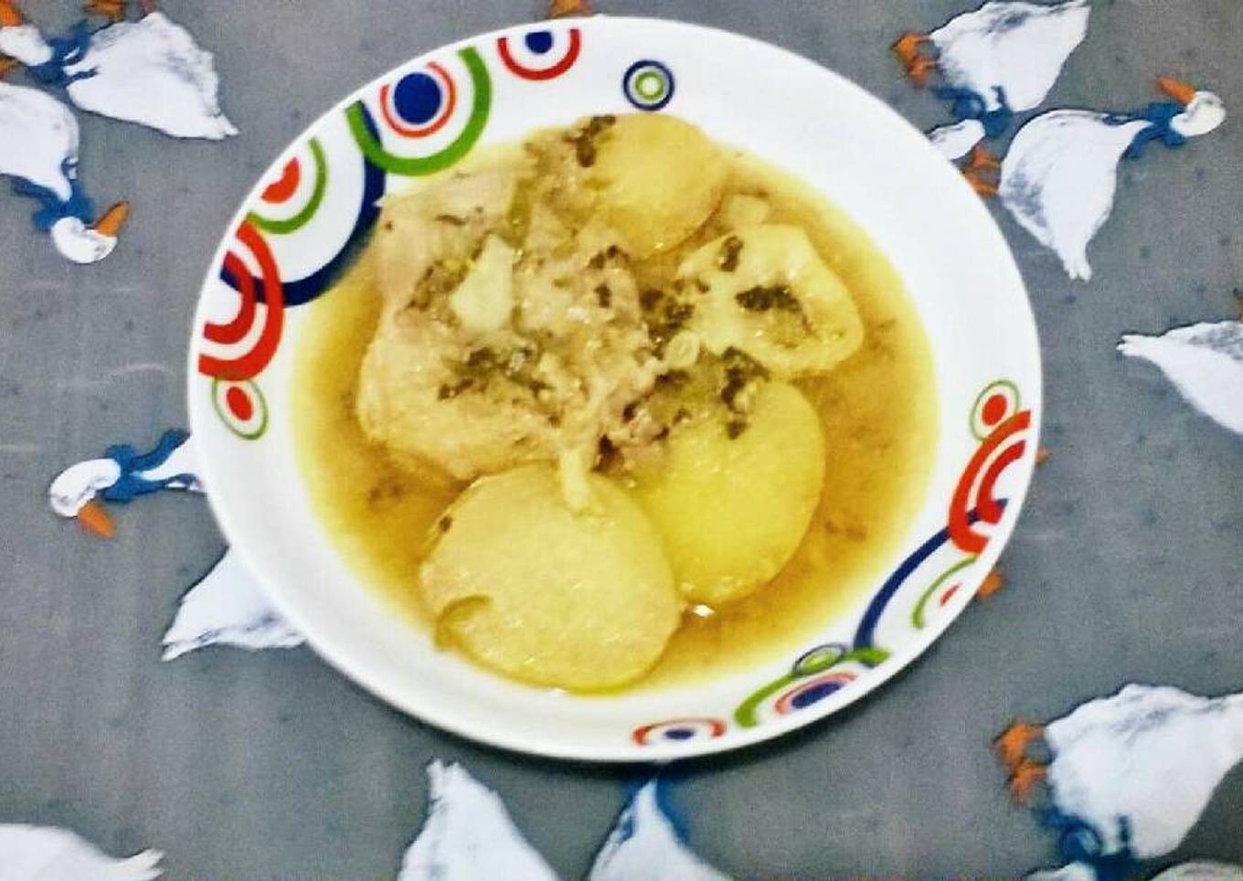 - Añadir las chuletas, las papas y lo que se picó finamente.