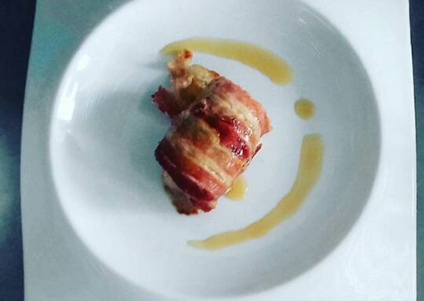 - Agregar las dos tiras de tocino de forma en que no se salgan los ingredientes que están dentro de la carne.