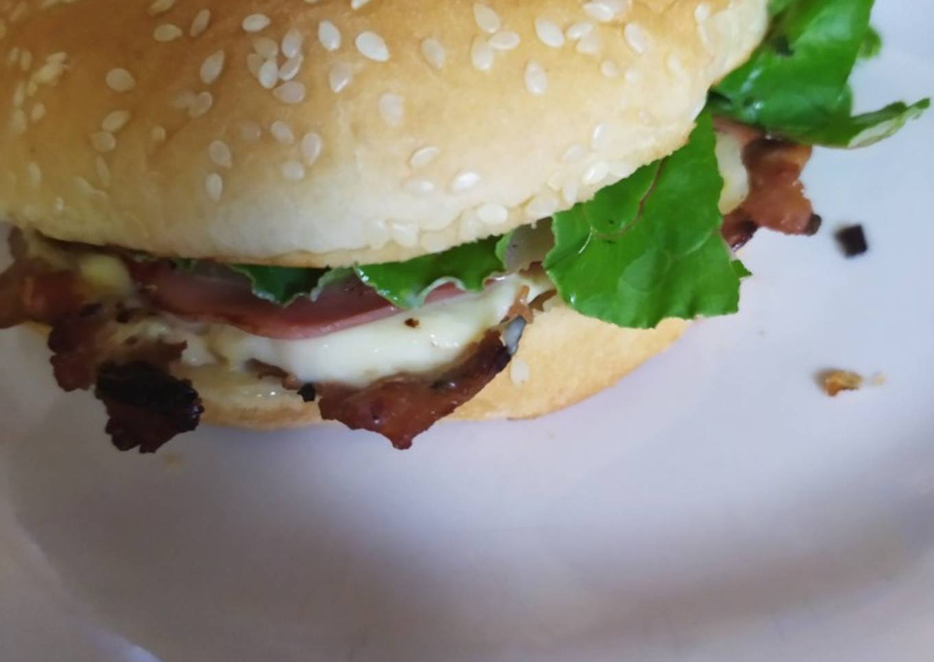 - En tu pan unta mayonesa coloca la carne, queso amarillo, jamón, lechuga, tomate y cebolla, colaca la otra tapa del pan y a disfrutar