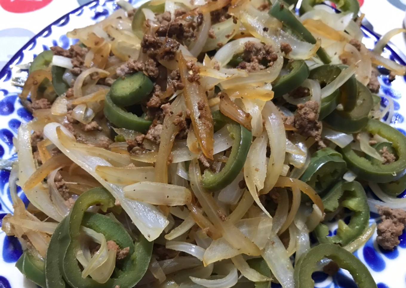 Steps to make to make Molida de res con cebolla y cuaresmeños. 100% libre de grasa
