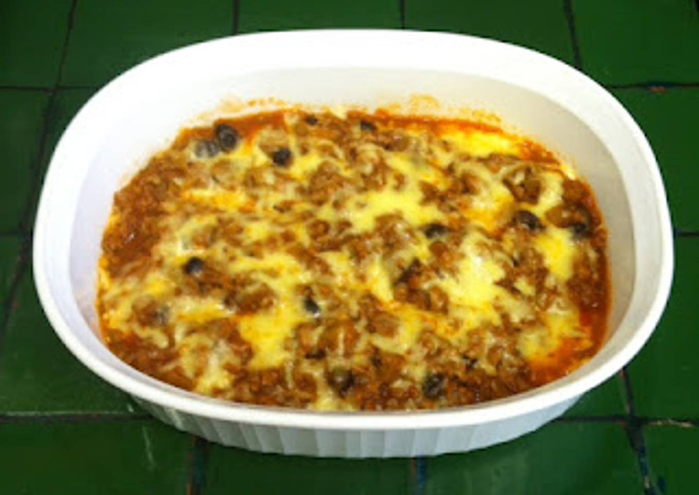 Se vacía a un refractario se le pone queso manchego o Chihuahua rallado encima y se mete al horno a gratinar. (Se pueden hacer sin carne) - Una aclaración: En realidad las moussakas llevan berenjena, cordero molido y salsa bechamel y son griegas, pero mi mamá siempre la hizo así.