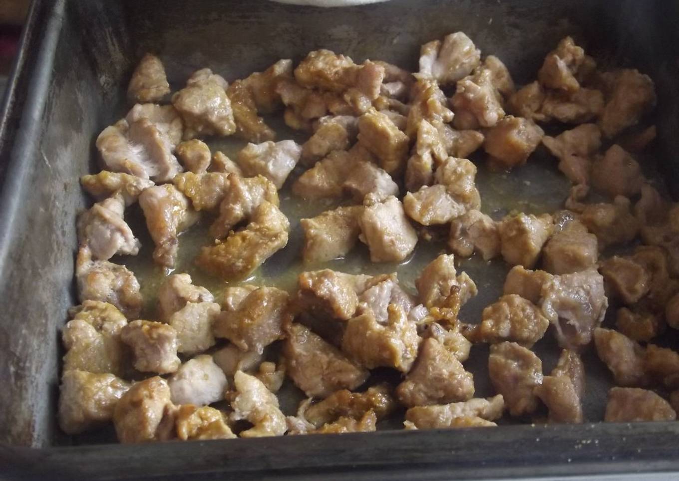 - 2 kilos carne de cerdo picada en trozos chicos y embadurnada de sal y pimienta