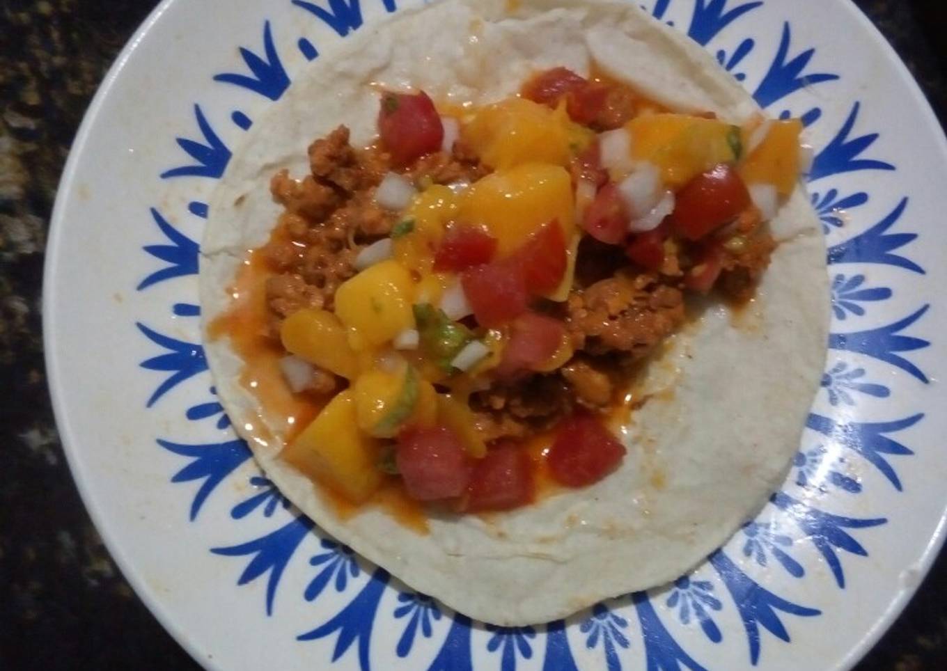 Instructions to make to make Taquitos de pastor con ensalada de mango