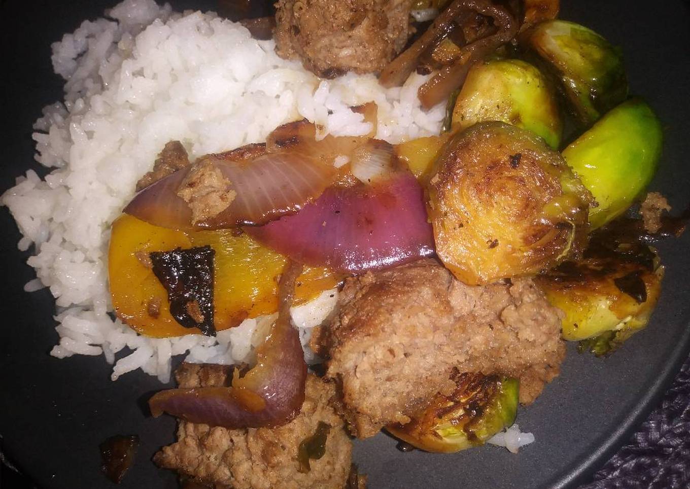 Hey everyone, I hope you are having an amazing day today. Today, we're going to prepare a distinctive dish, Albóndigas con brussels sprouts y arroz blanco. One of my favorites. For mine, I'm gonna make it a bit tasty. This is gonna smell and look delicious.