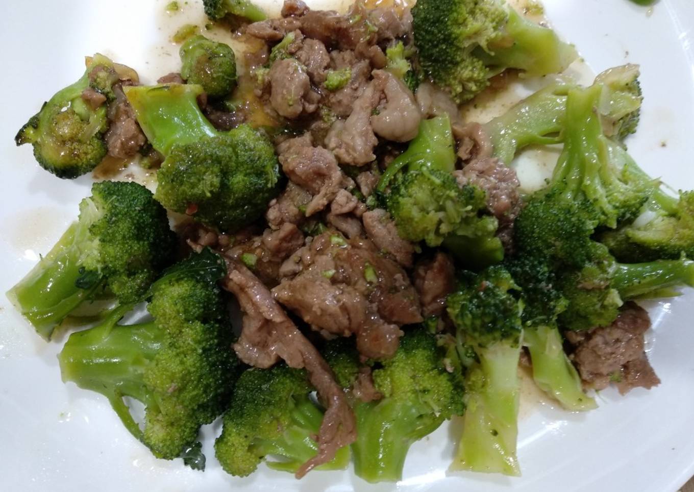 - Agregar el brócoli a la carne y poner encima el agua con la maicena a la carne y la salsa de soya.