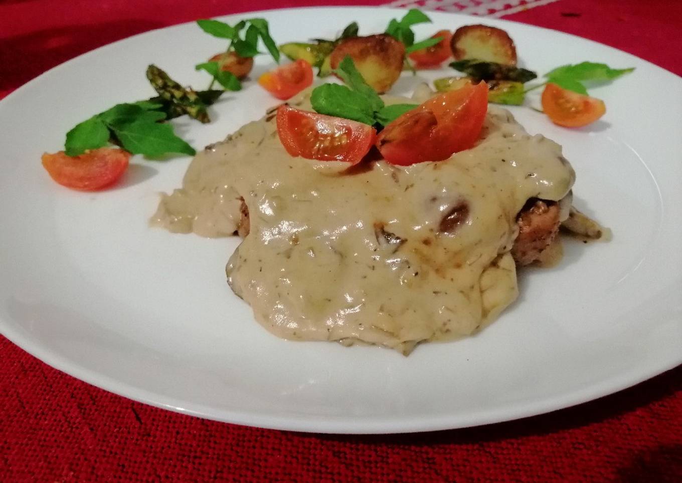 - En un plato ponemos un poco de la salsa y encima ponemos la carne (puede ser al revés)