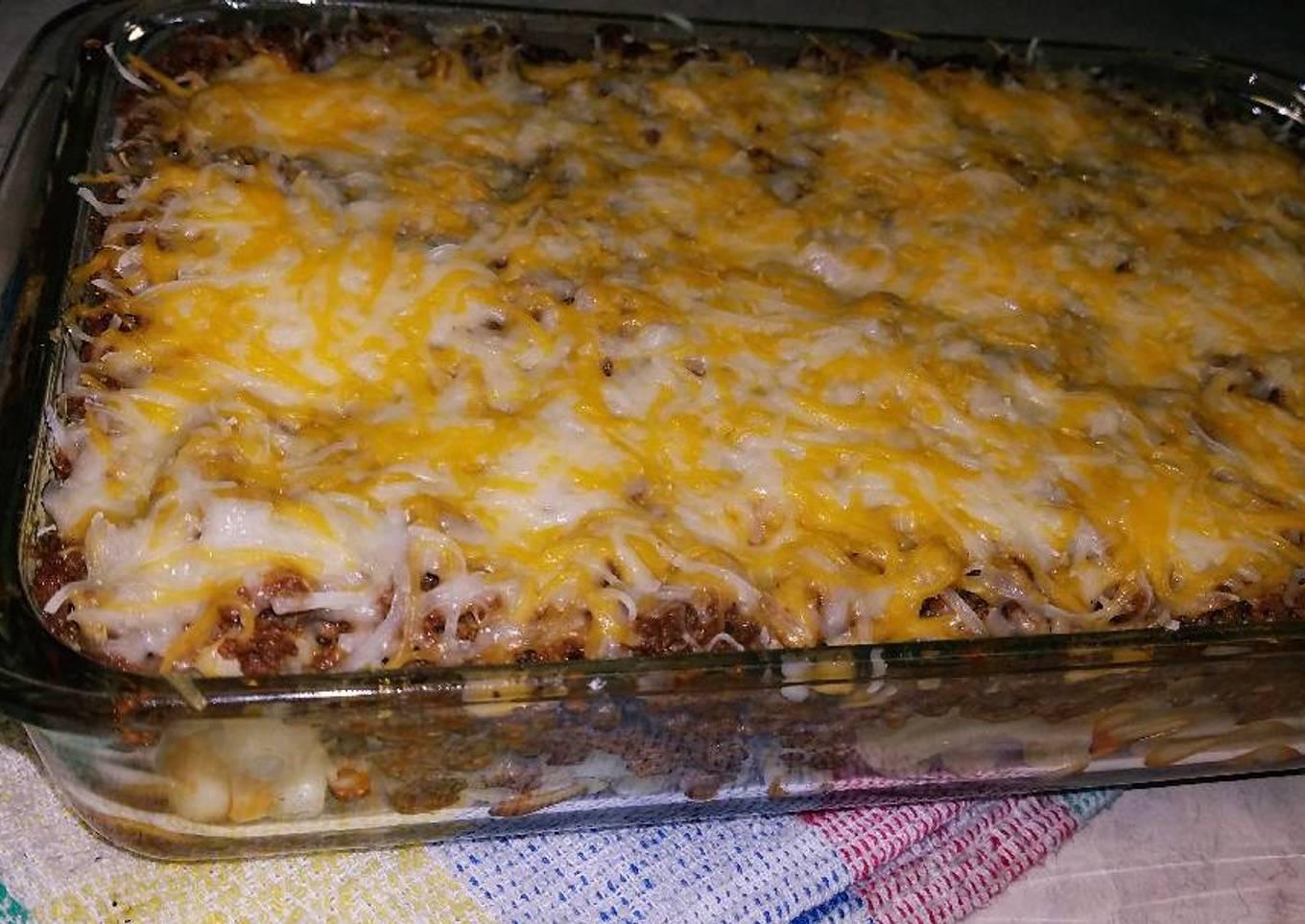 - Al final arriba del todo añadiremos bastante queso rallado a nuestro gusto cubriendolo todo. Y lo metemos al horno con una temperatura de 200°F. y unos 10 o 15 minutos.Y listo para comer.