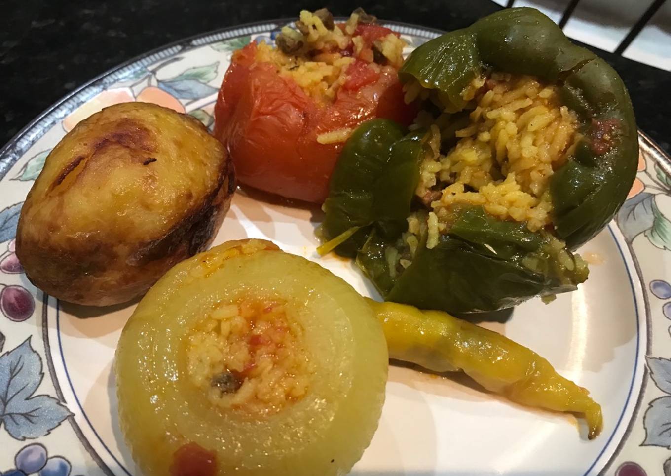 - Lavamos y limpiamos las cebollas, las papas, el chile dulce, los tomates y lo que quieras rellenar.