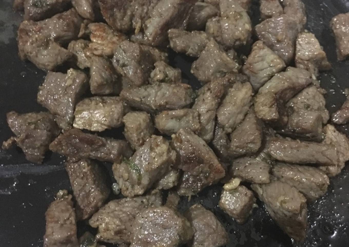 - Cuando la carne esté completamente descongelada, lavala normalmente y luego córtala en cuadros pequeños.