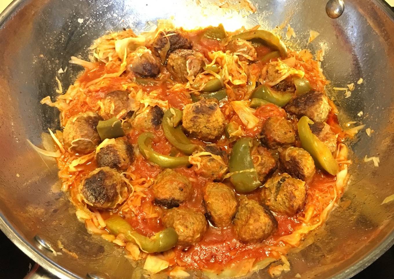 Instructions to make to make Albóndigas al tomate, en Repollo y Pimiento
