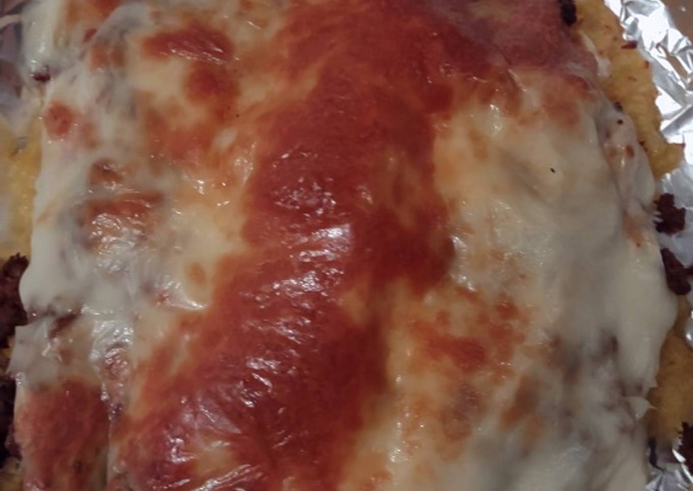 - Ya todo cocinado, pon en un sartén y con los plátanos bien machacaditos coloca, luego pones ketchup y mayonesa y pones la carne molida, luego ketchup y mayonesa y ya el queso, poner al horno si quiere, o al microondas por unos 5 minutos o hasta que el queso este derretido