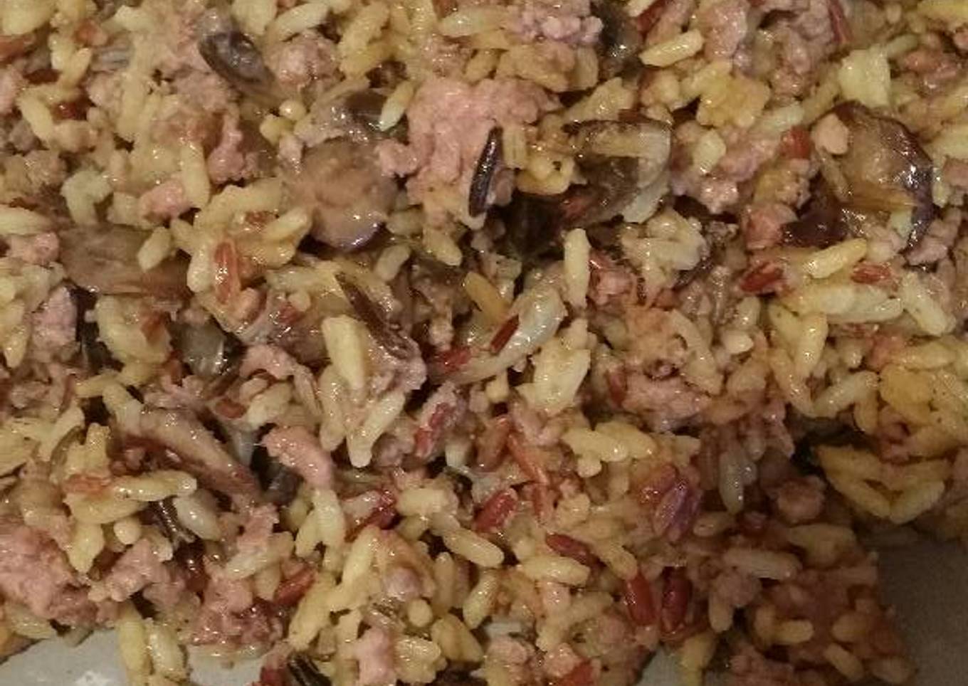 Arroz al curry con champiñones y carne picada