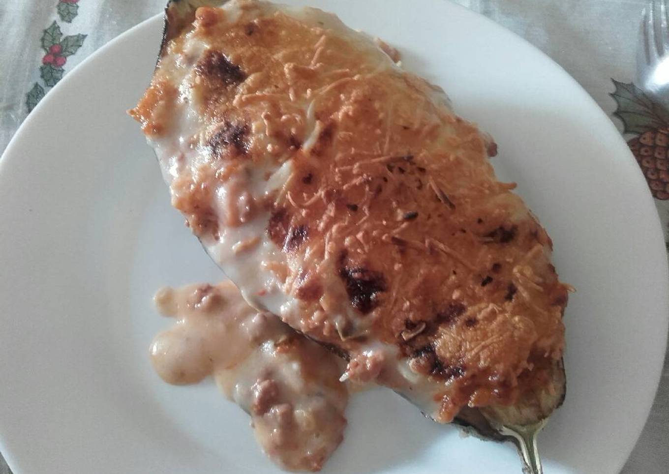 Berenjenas con bechamel rellenas de carne picada y queso