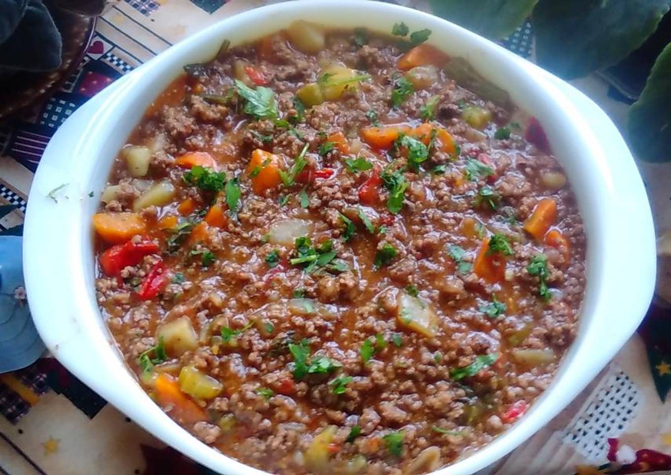 En mi blog tengo como 5 o 6 recetas parecidas pero revisando, cosa rara, aquí no tenía nada parecido. Esta es una versión que encontré por ahí muy parecida a las mías. Se presta para variar los vegetales y sazonar al gusto de cada quien. Se hace con carne molida de res, pero también se puede hacer con cerdo o cualquier otra carne que gusten. Aquí les digo como la hice. Se la recomiendo. Se puede acompañar con arroz blanco o una ensalada. #mirecetario