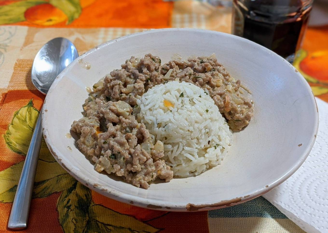 - Cuando la cebolla haya comenzado a transparentar, añadimos la carne y la salteamos hasta que tome color y quede bien suelta.