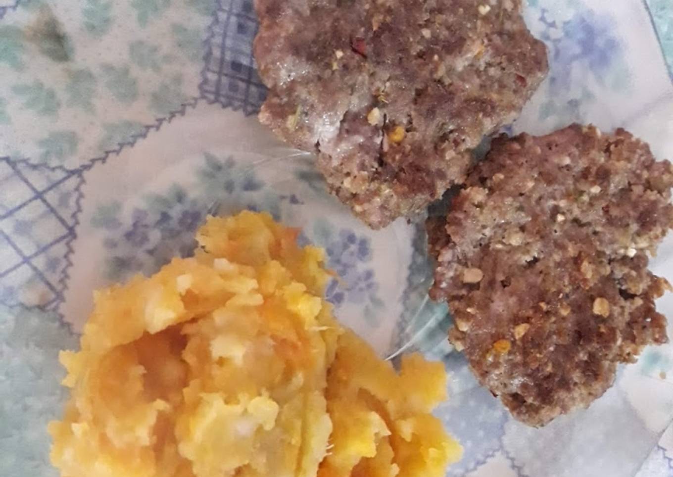 Hamburguesas de carne molida y avena con puré mixto 🍠🥔🥕