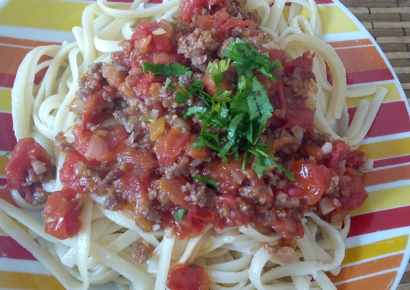 Tallarín en salsa de carne molida
